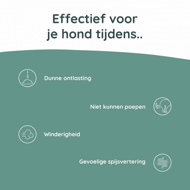 - Biedt ondersteuning bij diarree, obstipatie of flatulentie