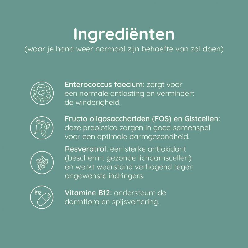 Veel hondeneigenaren kennen het verschijnsel van gevoelige darmen bij hun hond maar al te goed. Infecties (o.a. door bacteriën, virussen en parasieten) zijn hiervan veelal de oorzaak. Voor honden die hierbij ondersteuning kunnen gebruiken, heeft Greenfields Probiotics+ ontwikkeld. Het herstelt de natuurlijke balans in de darmen en ondersteunt de spijsvertering.
