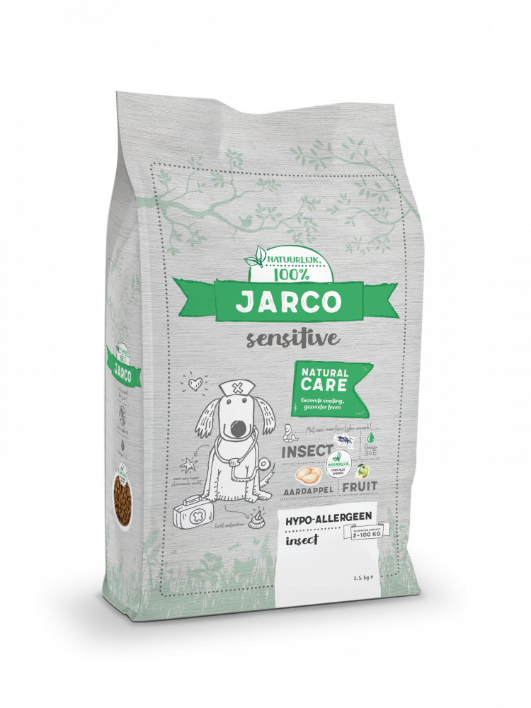 Door gebruik te maken van insecten in deze sensitive lijn, staan wij als Jarco achter duurzame kweek, nauwelijks CO2 uitstoot en zeer lage ecologische voetafdruk. Natural Sensitive Insect bevat ook glucosamine, chondroitine sulfaat en extra zalmolie die bijdraagt aan een glanzende vacht en gezonde huid.
