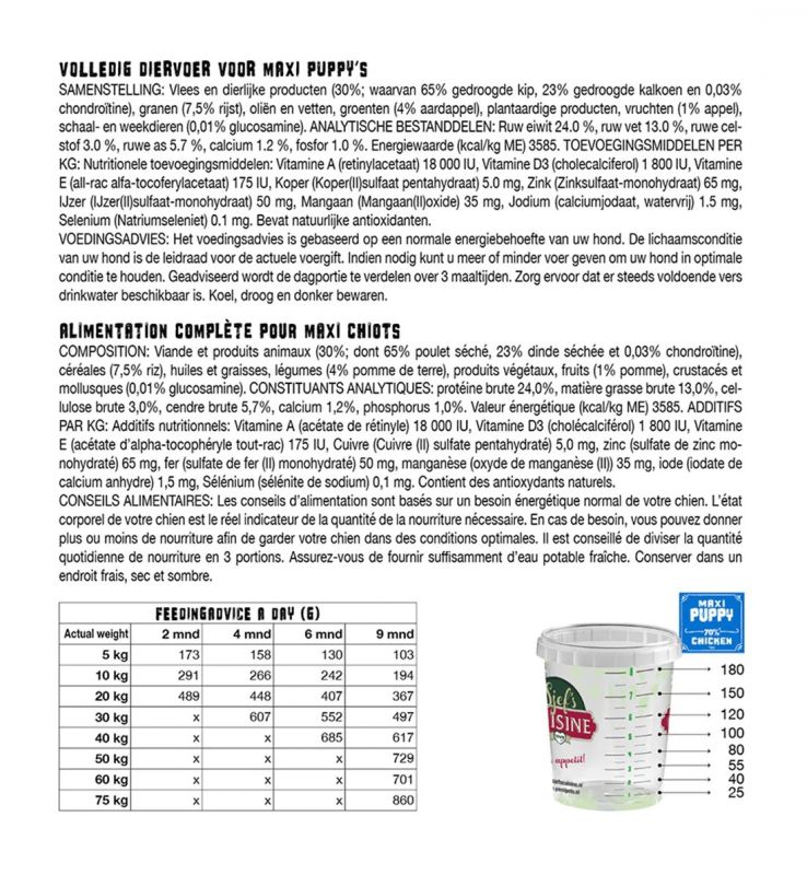 Sjef's Cuisine Maxi Puppy, om jouw grote pup zo gezond en evenwichtig mogelijk te laten opgroeien. De hoogwaardige en licht verteerbare eiwitten geven jouw pup de perfecte start.
