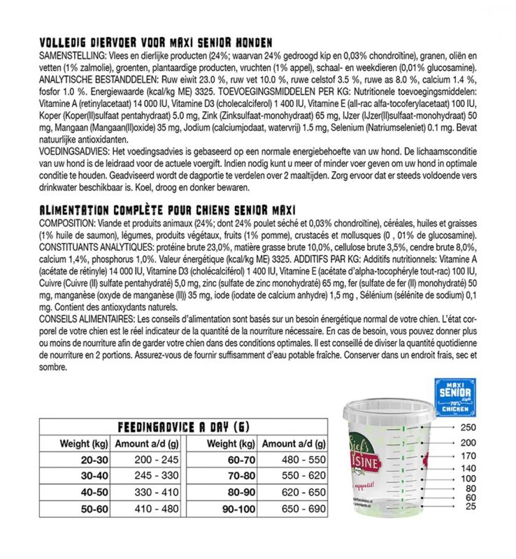 YamiPets Sjef's Cuisine Maxi Senior wordt geadviseerd voor oudere honden van de grotere hondenrassen.