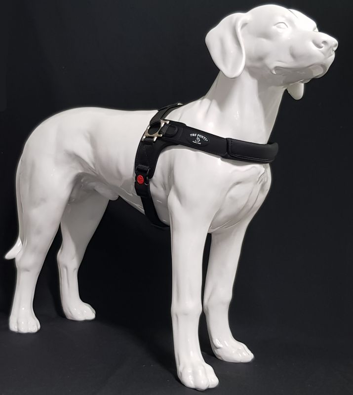 Het bijzonder innovatieve ontwerp geeft de hond een ruime bewegingsvrijheid, zoals bij alle Tre Ponti tuigen. Niet aangelijnd heeft de hond absoluut dezelfde bewegingsvrijheid als bij onze andere tuigen. Echter aangelijnd, bij het strekken van de lijn, krijgt de hond een pijnloze en lichte druk op de boven flanken. Dit zal doorgaans bij elke hond een reactie uitlokken. De hond zal meteen inhouden of stil blijven staan en naar u omkijken om te zien wat er aan de hand is. Door deze reactie te belonen kan het vervelende trekken van de hond beheersbaar worden en met de juiste aanpak zelfs volledig worden afgeleerd.