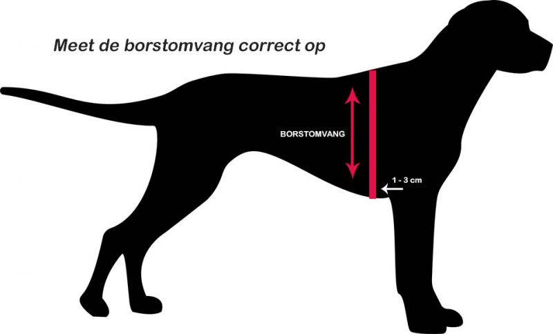 Gewicht is indicatief. Meet hierna de omvang van de borst van de hond op vanaf ongeveer 3 cm achter de oksels.