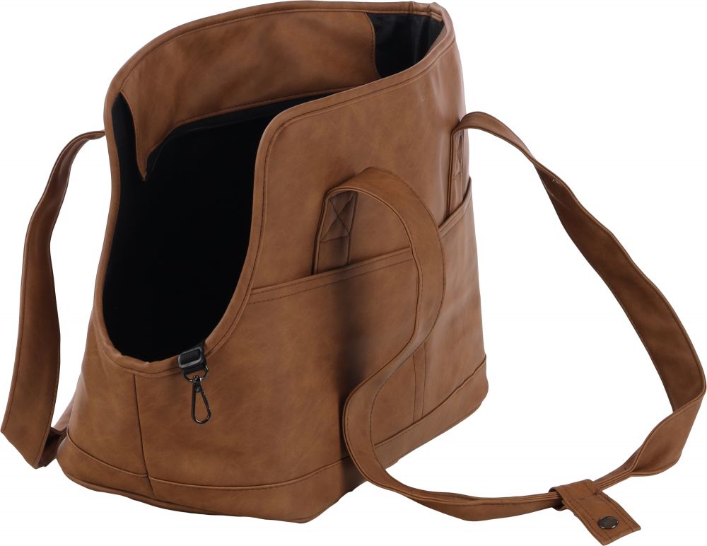 Met de Peaches draagtas in bruin kun je jouw harige vriend overal mee naartoe nemen in stijl! Gemaakt van kunstleder en afwasbaar met een vochtige doek. Met handige ritssluiting, verstelbare veiligheidsriem en opbergvakken. Jouw hond zal zich als een ware VIP voelen!