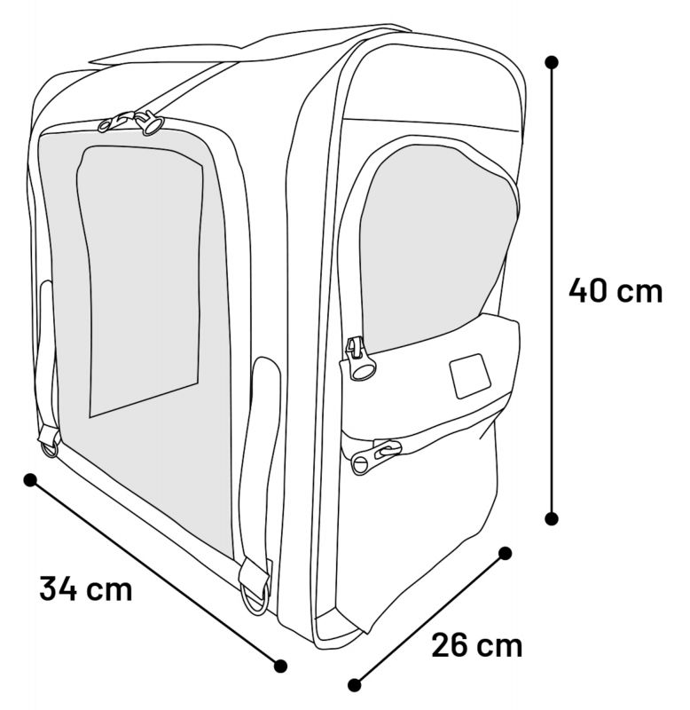 - Verstevigde frame en rugwand en openingen met ritssluiting aan de voor-, boven- en zijkant