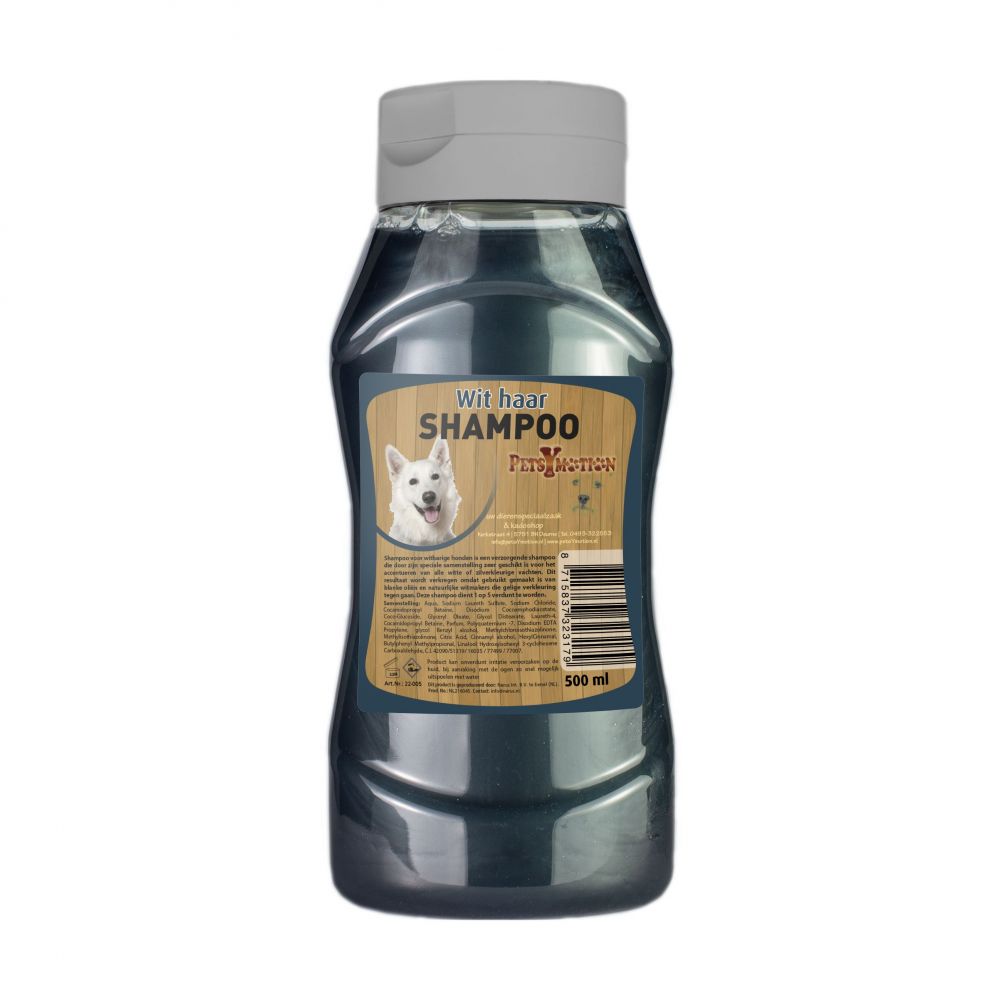 Shampoo voor witharige honden is een verzorgende shampoo die door zijn speciale samenstelling zeer geschikt is voor het accentueren van alle witte of zilverkleurige vachten. Dit resultaat wordt verkregen omdat gebruikt gemaakt is van blanke oliën en natuurlijke witmakers die gelige verkleuring tegen gaan. Deze shampoo dient 1 op 5 verdunt te worden.