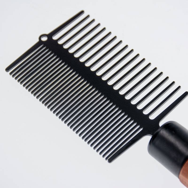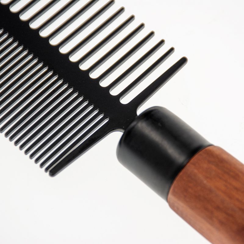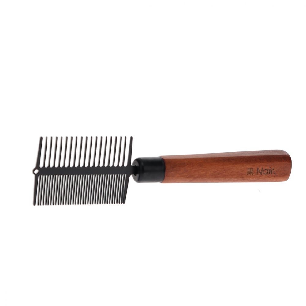 Deze dubbelzijdige kam van Noir Japandi heeft 17 tanden aan de ene zijde en 35 aan de andere zijde en is geschikt voor een goede basisverzorging het hele jaar door. De kam wordt voornamelijk gebruikt om de vacht mooi en klitvrij te houden. De roterende en afgeronde tanden gaan gemakkelijk door de vacht en zorgen ervoor dat je de klitten uit kan kammen. De kan is geschikt voor honden en katten. De kam is voorzien van een ergonomische handgreep van FSC-gecertificeerd beukenhout met een donker gebeitste afwerking.