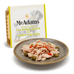 Onze ingrediënten zijn allemaal van levensmiddelenkwaliteit, we hebben nooit gestripte karkassen gebruikt of vleesmeel toegevoegd. Ook werken wij nauw samen met onze boeren om ervoor te zorgen dat de in McAdams gebruikte kippen in het hoogst mogelijke welzijn leven.