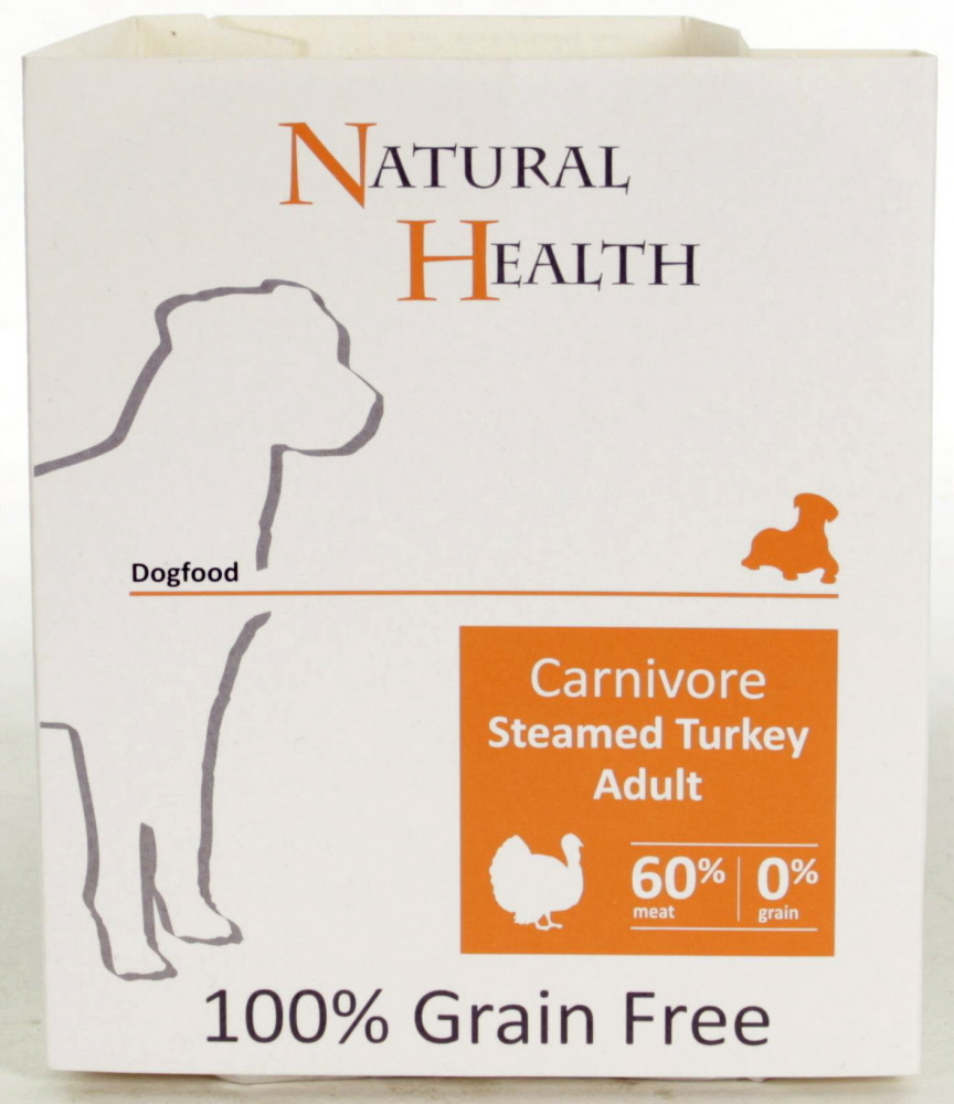 Kalkoen 60%. aardappel. wortel. erwten. mineralen. zonnebloemolie. zalmolie. gedroogde tomaat. gedroogd zeewier. gedroogde basilicum.