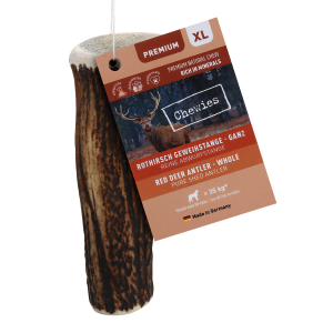 Chewies-geweien bieden honden wekenlang natuurlijk kauwplezier. Ze hebben een benige substantie die het heerlijke geweimerg omringt. Bij edelherten is deze laag dikker dan bij damherten. Hierdoor kunt u de hardheid van het gewei afstemmen op de bijtkracht van uw hond. Ons onbehandelde gewei is monoproteïne en ook bij uitstek geschikt voor voedingsgevoelige viervoeters. Ze bevatten ook calcium, dat helpt om normale botten en tanden te behouden. Bij het halve edelhertgewei komt het smakelijke merg al te voorschijn. Deze zijn goed voor beginners en minder actieve kauwers. Al ons gewei is een 100% natuurlijk afgedankt gewei. Beide soorten vervellen ze één keer per jaar en er groeit een nieuwe terug. Chewies-gewei is daarom een absoluut blijvend kauwplezier. Ze zijn geurloos en brokkelen niet af. Een interessant stukje natuur voor honden.