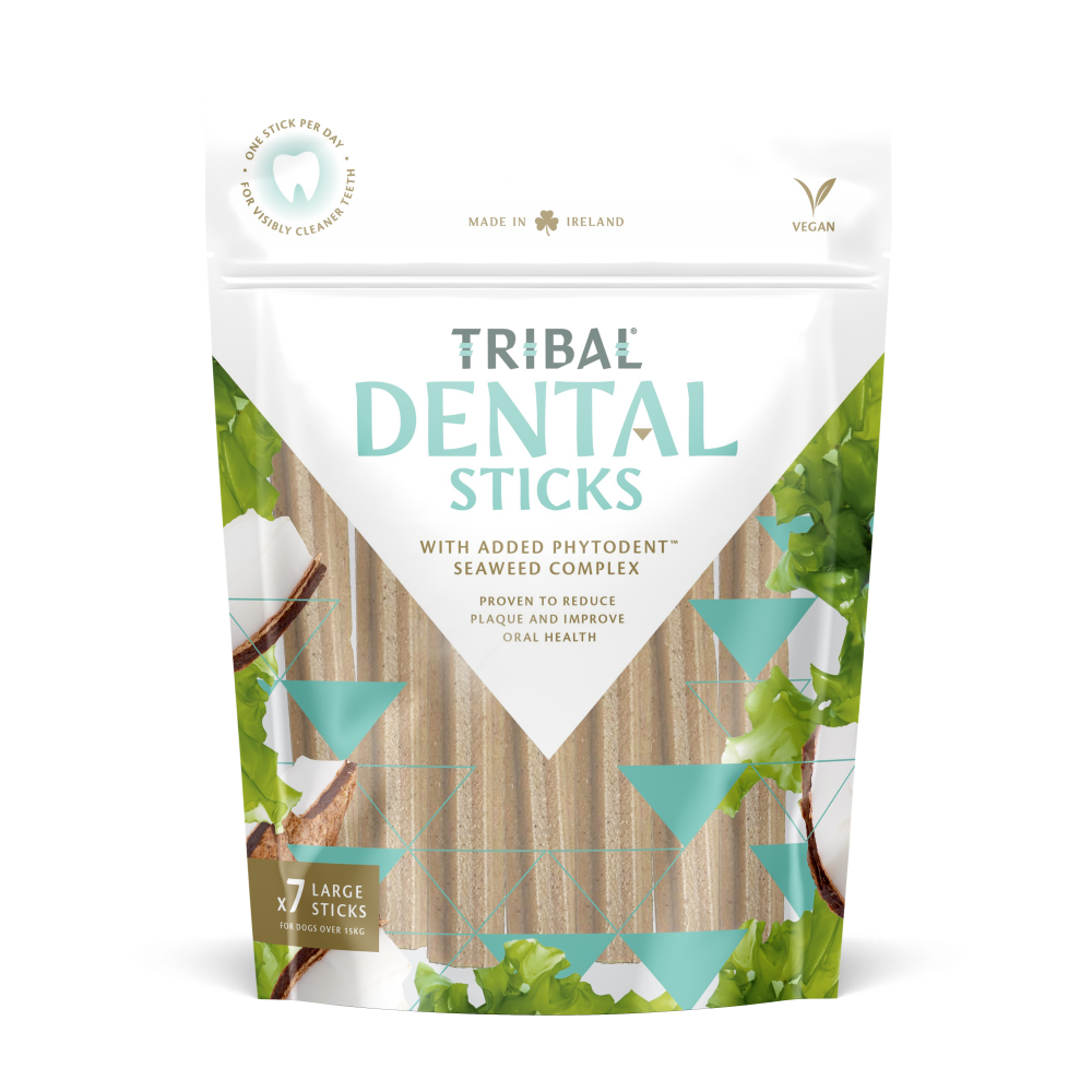 Een natuurlijke dental stick voor honden met PhytoDent™, een uniek zeewiercomplex, aanbevolen door dierenartsen. Onze dental sticks zijn ontworpen om tanden en tandvlees te onderhouden en zorgen tegelijkertijd voor een frisse adem. Tribal Dental Sticks zijn veganistisch, graanvrij, vetarm en gemaakt zonder toegevoegde suikers of kunstmatige ingrediënten, waardoor ze geschikt zijn voor alle honden. Voer voor de beste resultaten 1 stick per dag gedurende minstens 4 weken.