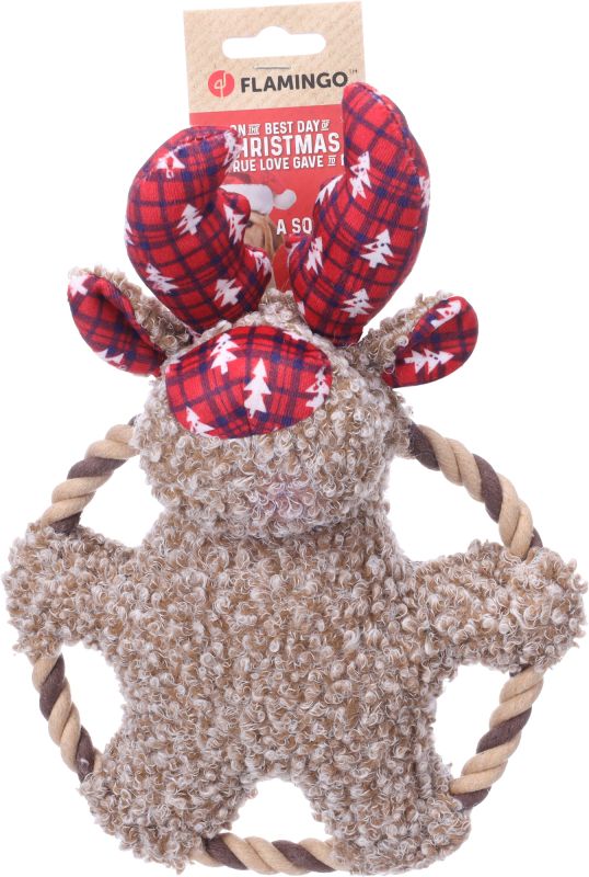 Laat je viervoeter deze kerst stralen met Krola, het vrolijke rendier! Gemaakt van zacht pluche en uitgerust met een ringvormig touw voor trek- en werpspelletjes, én een squeaker voor extra speelplezier. Een uniek ontwerp van Flamingo dat jouw hond zeker zal bekoren. Het perfecte kerstcadeau voor jouw trouwe vriend!