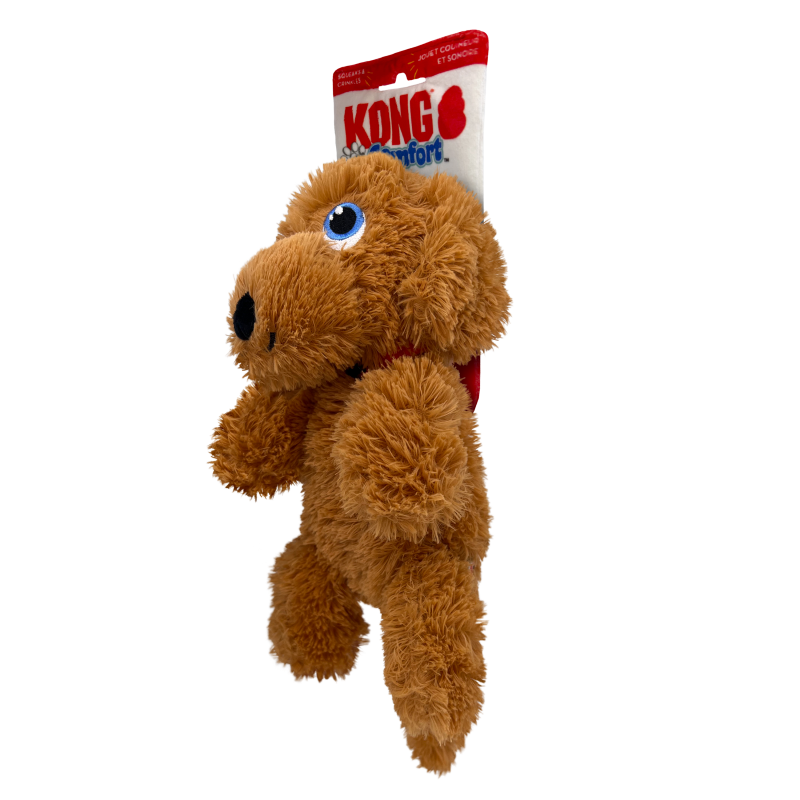 De Kong Comfort Pups Goldie 33 cm is de ultieme knuffelvriend voor je hond, gemaakt van ultrazacht pluche. Dit hondenspeeltje heeft een slap lichaam dat perfect is om mee te knuffelen. Deze schattige knuffel biedt dubbel plezier dankzij de bedrukte pluche kreukelverpakking, wat het tot 2 speeltjes in 1 maakt. In het lichaam bevindt zich een pieper en de duurzame stoffen achterkant zorgt voor extra stevigheid. Met een gemiddelde hoeveelheid polyvulling is de Comfort Pup niet alleen leuk om mee te spelen, maar ook heerlijk om tegenaan te liggen voor een dutje.