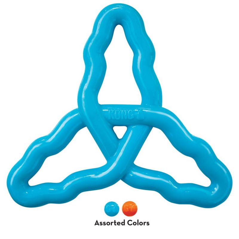 De KONG Flyangle beloont apporteer- en trekinstincten met een ontwerp met drie handgrepen dat een onvoorspelbare stuit creëert en tegelijkertijd meerdere greeppunten biedt voor interactief plezier. Het duurzame, flexibele materiaal zorgt voor langdurige speelsessies en is zacht voor tanden en tandvlees. Dit speeltje is geweldig voor trekpartijen tussen twee honden of tussen baasje en hond en blijft drijven voor nog meer afwisseling.
