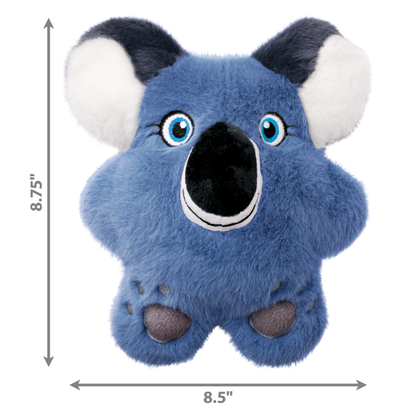 KONG Snuzzles Koala zit vol met plezier en zijn hele lijf piept met een lange, luide pieptoon. De pluche buitenkant zorgt voor genot, terwijl het instinctieve kauwgedrag bevredigd wordt, en daarnaast zorgen krakende oren voor langer speelplezier. Het compacte gevoel bij het bijten en de beloning voor het juiste spel zorgt voor betrokkenheid. De platte vorm zal verschillende honden van verschillende grootte zeker aanspreken en is ideaal voor plezier binnenshuis.