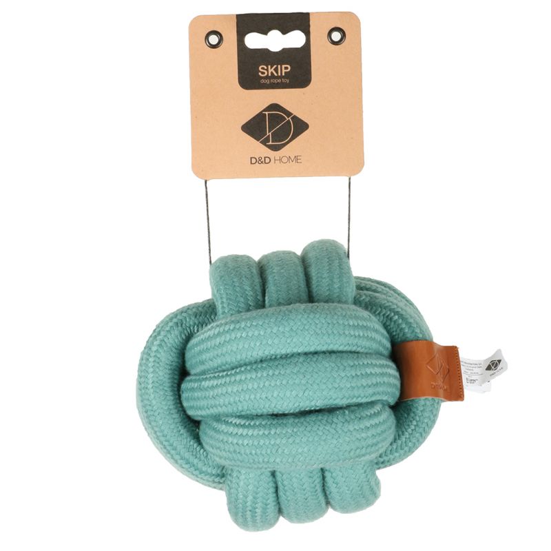 Hondenspeeltje Skip is een flosbal gemaakt van 100% katoen en daarmee erg duurzaam. Het natuurlijk katoenen touw is favoriet kauwmateriaal en voorziet de hond van uren lang speelplezier. Een bijkomend voordeel van het kauwen op een natuurlijk katoenen touw, is dat het helpt het gebit en tandvlees gezond te houden.