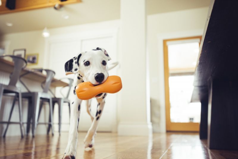Eerder werd al duidelijk dat er vele redenen kunnen zijn voor een hond om te kauwen: een fijn gevoel, stressvermindering, maar ook kauwkracht behouden of pijn verminderen bij het wisselen van tandjes. Die behoefte neem je mee in de keuze. Zo kies je voor puppy’s sterk, maar niet te hard kauwspeelgoed. Het moet enigszins flexibel zijn, omdat het anders juist extra pijnlijk kan zijn. Dat zou er weer toe kunnen leiden dat de pup het speeltje links laat liggen en zijn tandjes liever in een mooie schoen zet.