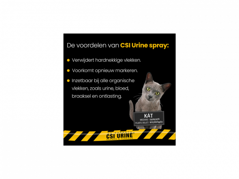 Met gewoon schoonmaakmiddel krijg je een urinevlek wel weg en zal het fris ruiken, maar de geur zal niet weg zijn voor de sterke katten- of hondenneus. Met als gevolg dat jouw huisdier weer terug zal komen naar diezelfde plek om bijvoorbeeld weer te sproeien. Met het gebruik van CSI Urine draag je bij aan het voorkomen van het opnieuw markeren.