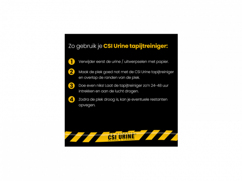 - Dankzij de niet zichtbare biofilm die achterblijft bij CSI Urine, worden geurtjes tussen reinigingsbeurten door geneutraliseerd. Gewoon schoonmaakmiddel doet dit niet, die parfumeert enkel de vlek / geur!