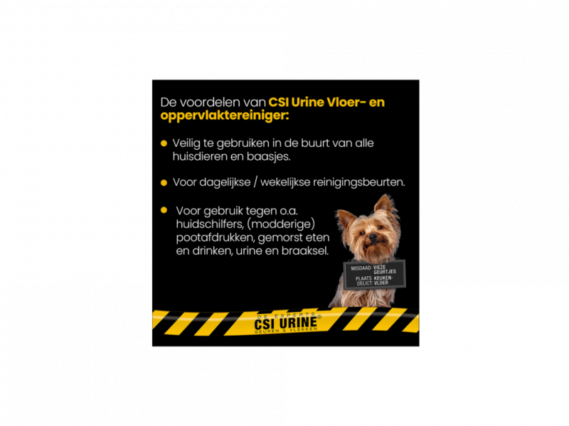 - Heeft jouw pup of kitten een ongelukje gehad in huis? Gebruik CSI Urine geur- en vlekverwijderaar hond & puppy of kat & kitten.