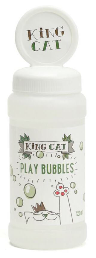De King Catnip playbubbels is een bellenblaas waaraan een kattenkruidextract is toegevoegd. Katten vinden het geweldig om op "jacht" te gaan naar de bellen. Door het kattenkruid extract worden de bellen extra interessant....